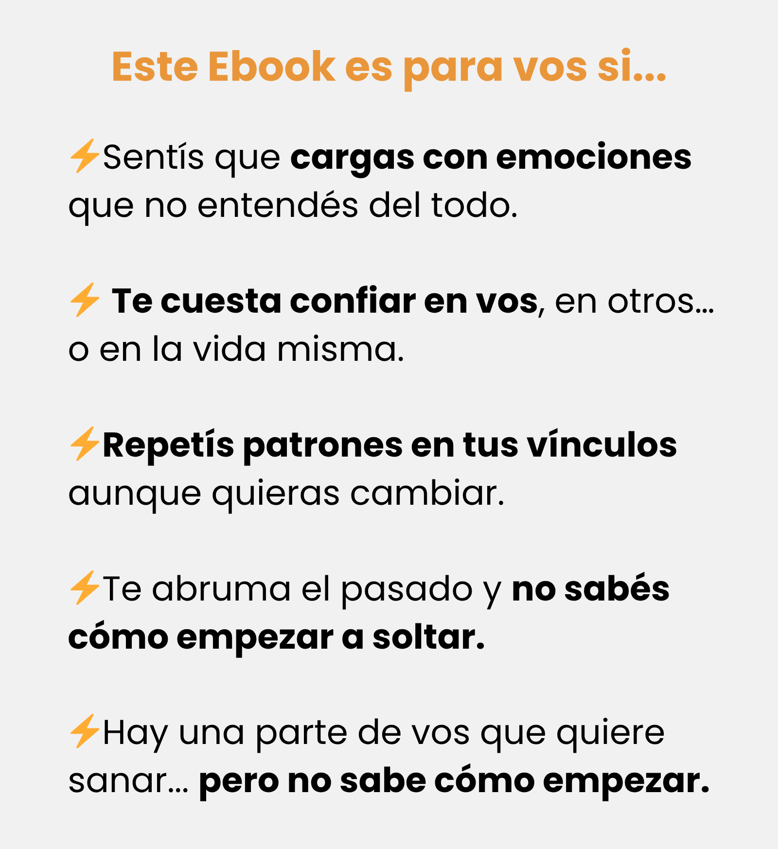 Si alguna vez sentiste que repetís patrones, que hay heridas que aún duelen o que te cuesta entender tus emociones... este Ebook es para vos.