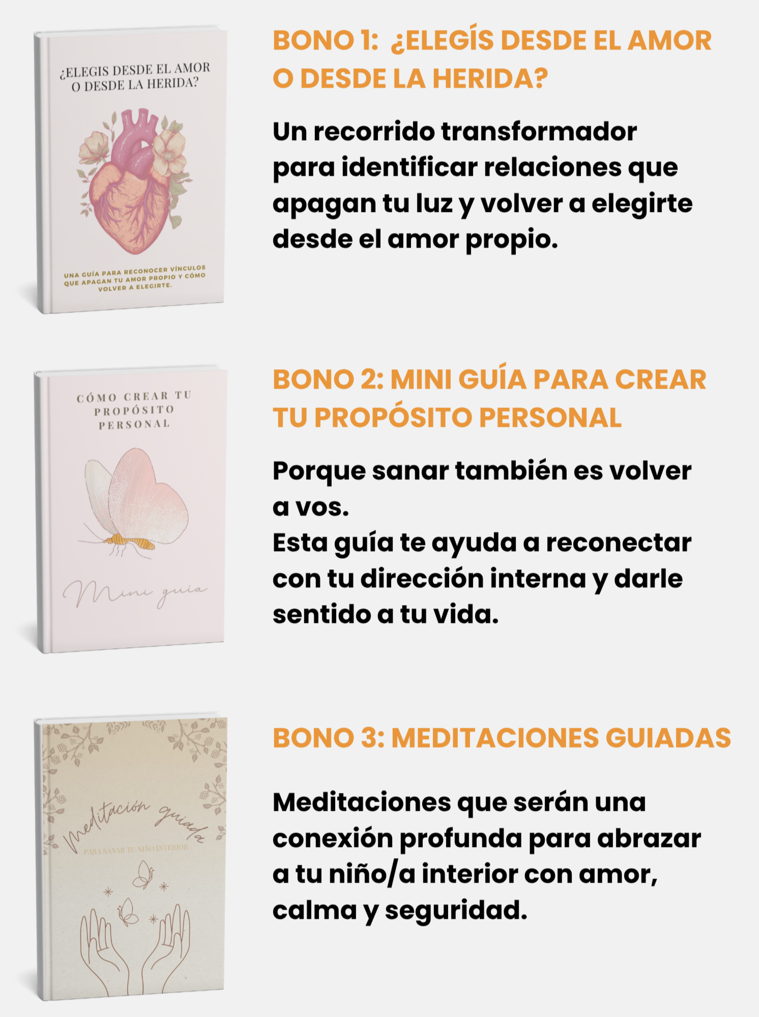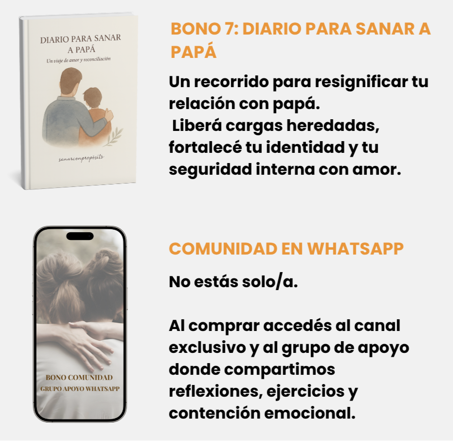 ❤️🔥 Bonus: “¿Elegís desde el amor o desde la herida?”📱 Acceso a grupo privado de WhatsApp para sanar en comunidad.