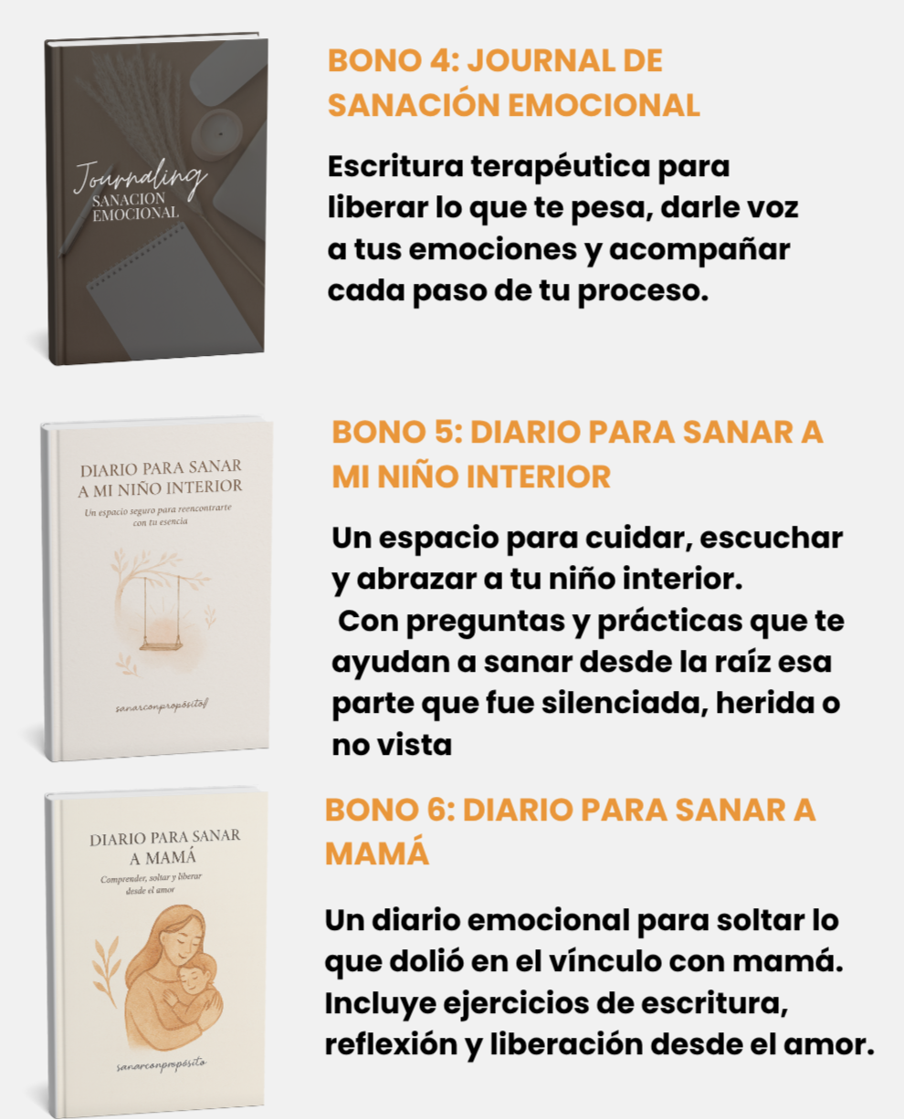 Incluye ejercicios terapéuticos, reflexiones y espacios para que puedas sanar desde casa como si estuvieras en una sesión.